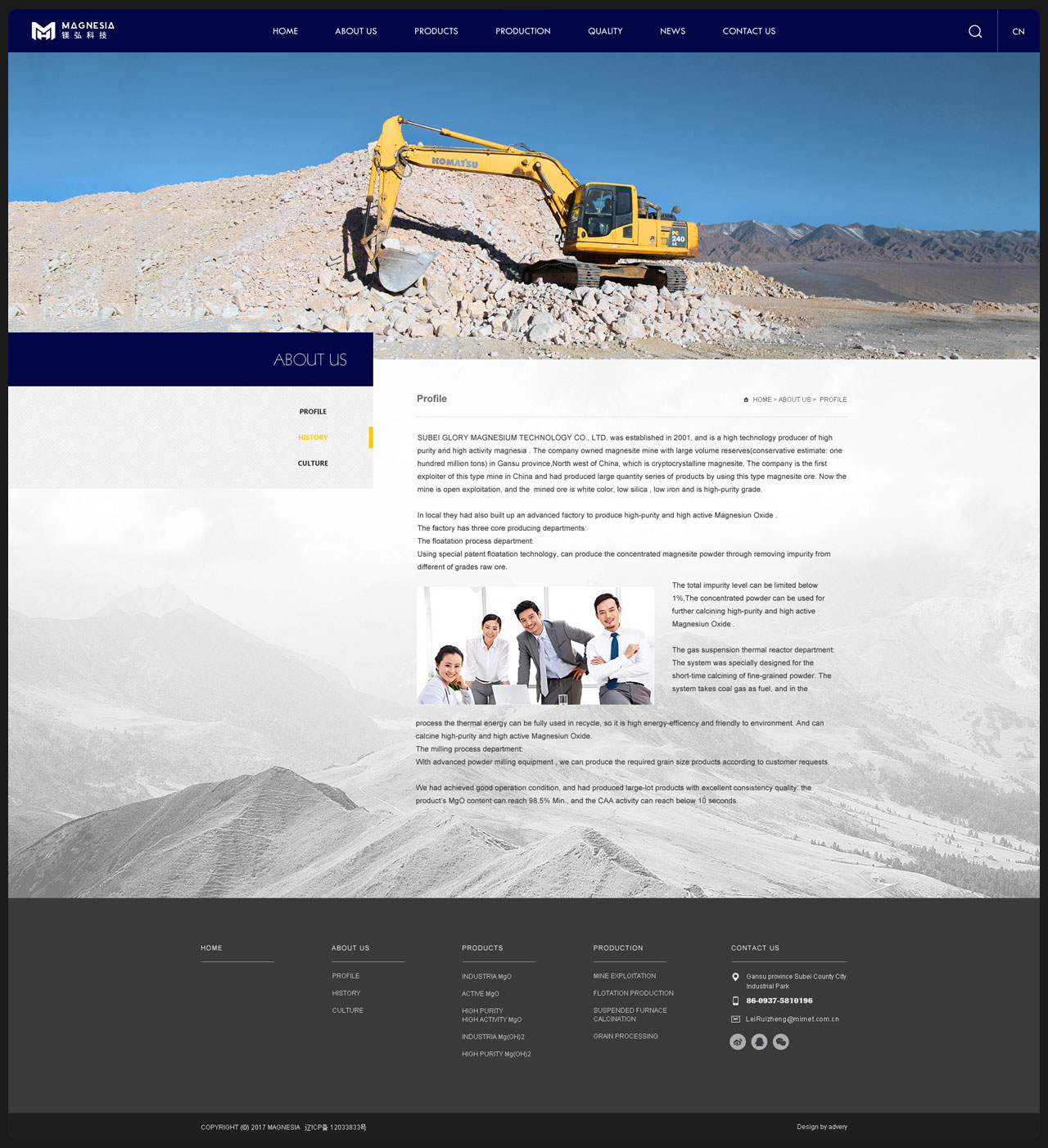 甘肃镁弘科技有限公司成立于2007年7月,坐落于甘肃省肃北蒙古族自治县党城工业园区,企业下设选厂和矿山两部分。选厂占地面积 9.9万平方米,菱镁矿区面积0.142平方公里,拥有一条年产10万吨高活性氧化镁现代化生产线,在国内属首台套。