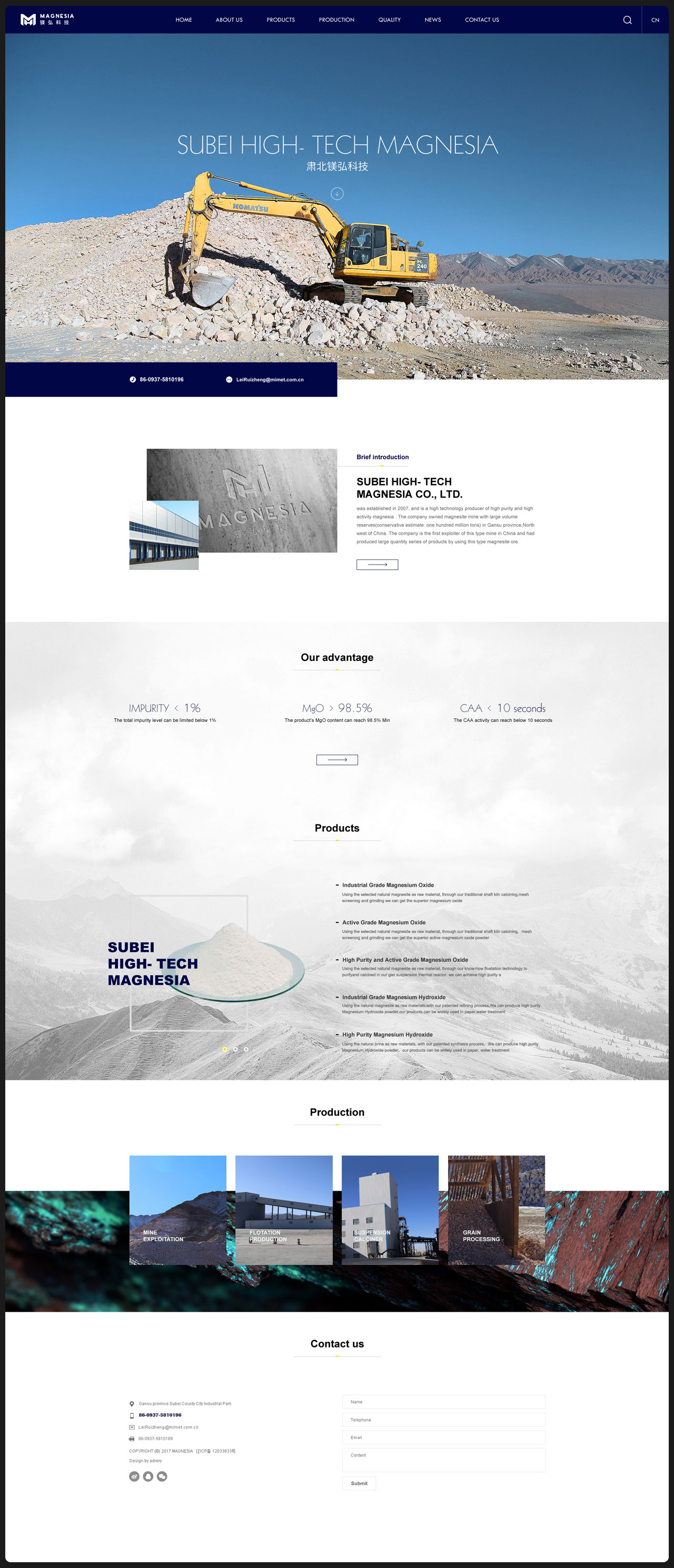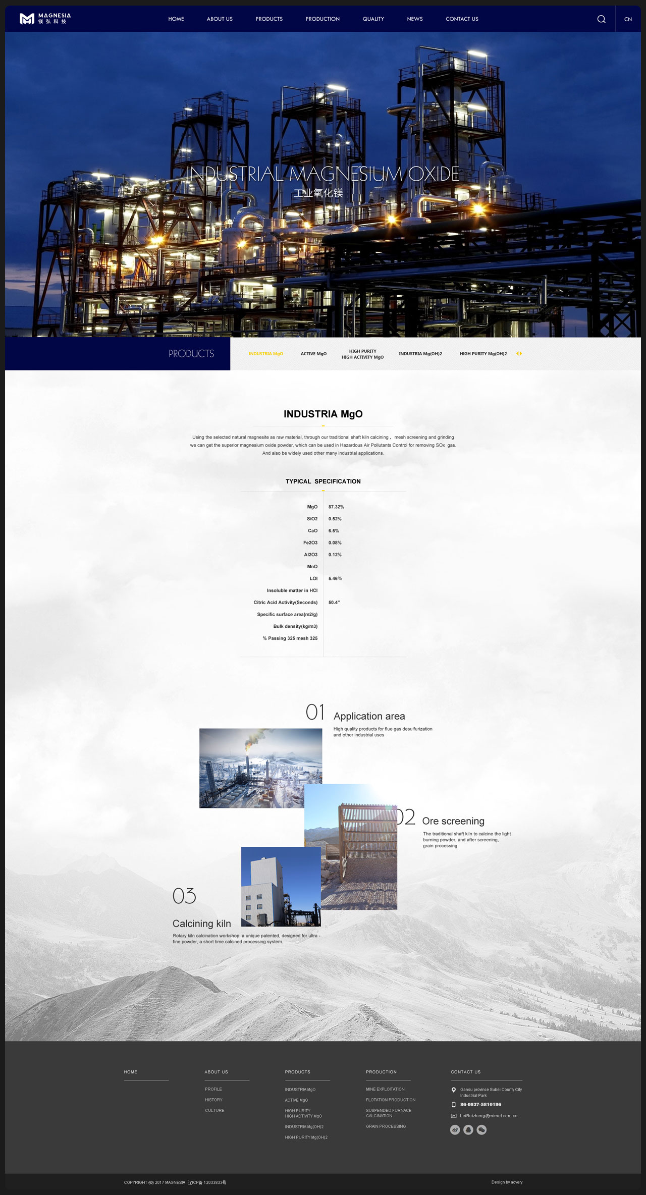 甘肃镁弘科技有限公司成立于2007年7月,坐落于甘肃省肃北蒙古族自治县党城工业园区,企业下设选厂和矿山两部分。选厂占地面积 9.9万平方米,菱镁矿区面积0.142平方公里,拥有一条年产10万吨高活性氧化镁现代化生产线,在国内属首台套。